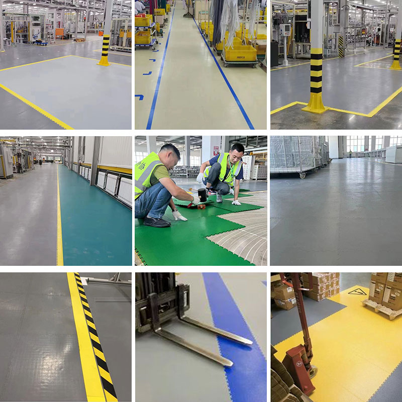 軟質(zhì)絕緣地板能將每個獨立的地板快速拼裝成整體地面,專利型鎖扣結構連接能力更強,可承受叉車的來回碾壓。施工過程中無需膠黏劑等材質(zhì),具有施工簡單快速、色彩絢麗、美觀大方、可移動性強、可重復使用等特點。